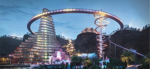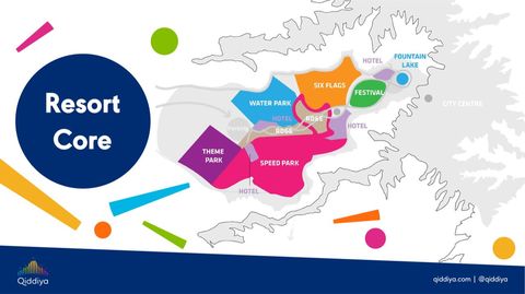 奇地亞主題樂園由丹麥知名建築團隊BIG(Bjarke Ingels Group)打造,這個大型娛樂城距離沙烏地阿拉伯首都利雅德僅有45公里,40分鐘的車程就能抵達。目前預計2022年將開啟第一階段的營運計畫,開放奇地亞最核心的「渡假村」!