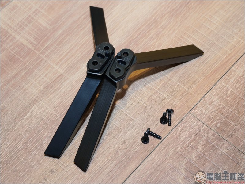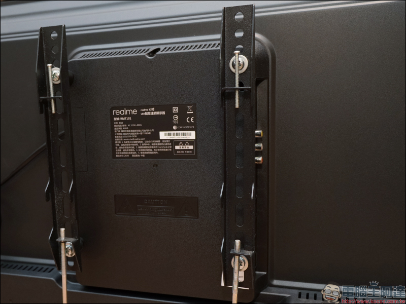 除了附贈的底座腳架,機身背面也備有提供壁掛安裝的標準規格螺絲鎖孔,方便有壁掛需求的消費者能自行另外添購壁掛架來安裝: