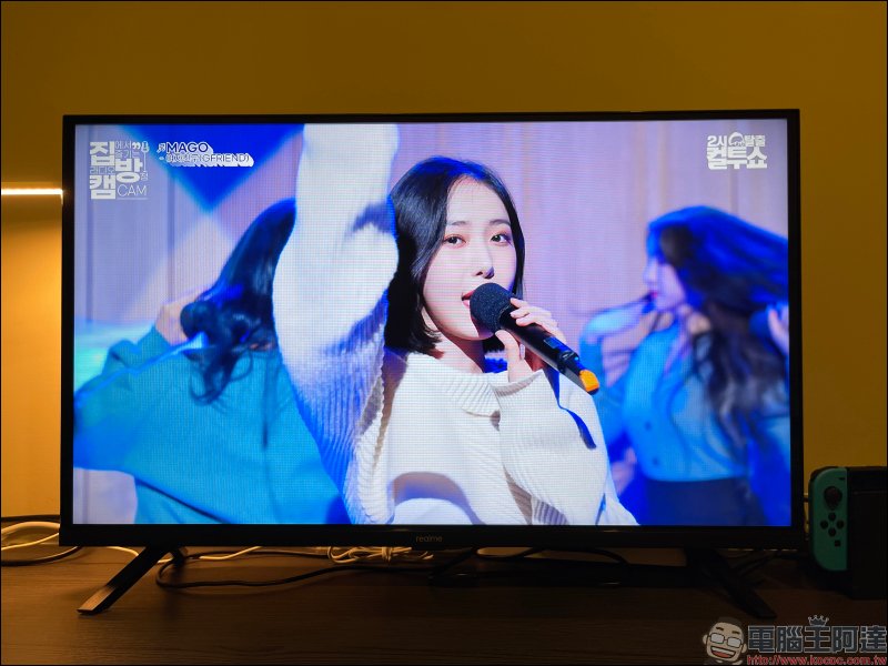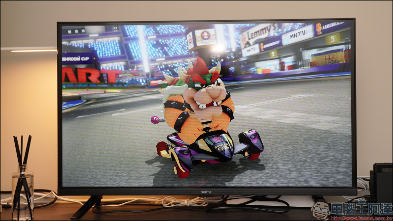 實際用 realme 智慧連網顯示器玩了幾場 Switch 《瑪利歐賽車8 豪華版》,除了畫面色彩、亮度都有一定水準,對於 Switch 這類遊戲機的娛樂需求, 32 吋機型擺在房間確實相當剛好: