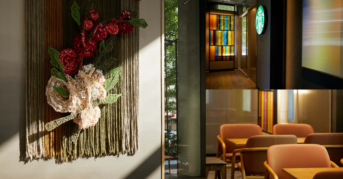 為呼應時代寓所的故事理念,門市內與在地藝術家打造了數面藝術牆面,以咖啡樹枝經過特殊處理,結合鮮豔立體藝術編織品,呈現出咖啡植栽的變化,期待顧客在想用手中咖啡時在門市空間與藝術作品連結中找出專屬的記憶,就如同時代寓所傳承「Tapestry酒店」故事酒店的宗旨。