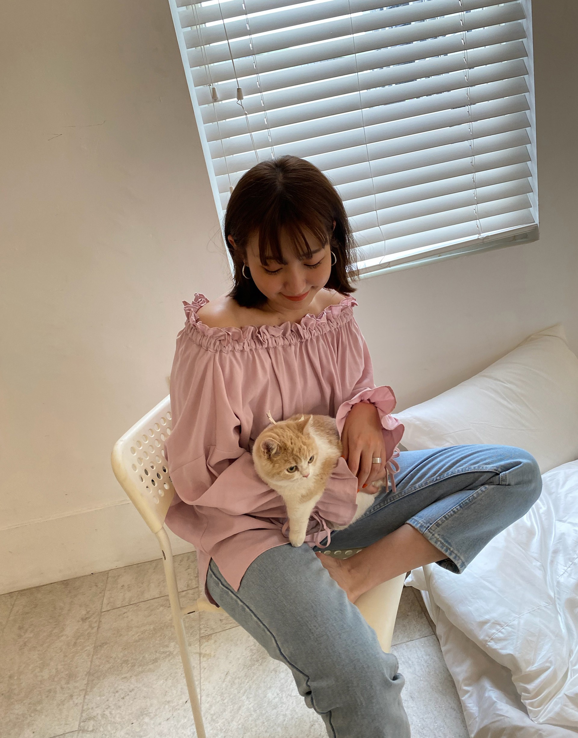 甜美可愛的浪漫女孩一字領綁結上衣,不管是在領口還是袖口的部分都有很美的小細節設計,鬆緊帶打結造型。衣服是前後兩穿式設計,隨性一套就超仙超美啦。