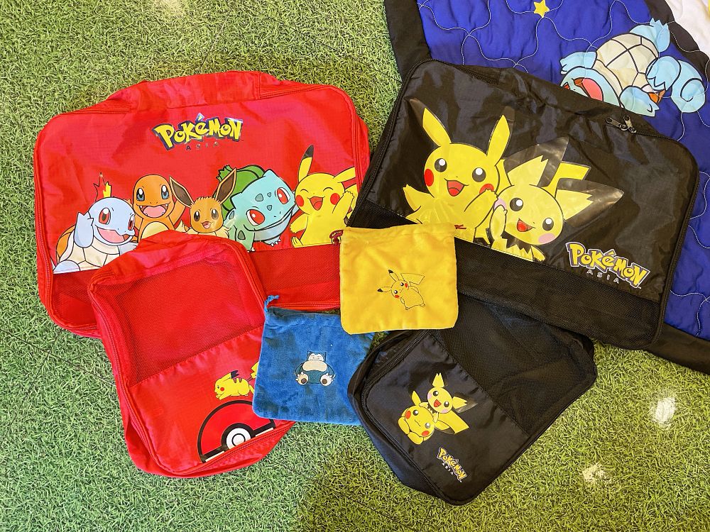 旅行週邊還有「收納三件組」可入手,內含三種尺寸收納袋,可裝鞋子、衣物或隨身小物,共有紅、黑兩款,印上皮卡丘、妙蛙種子、伊布、皮丘等寶可夢,可愛又實用。