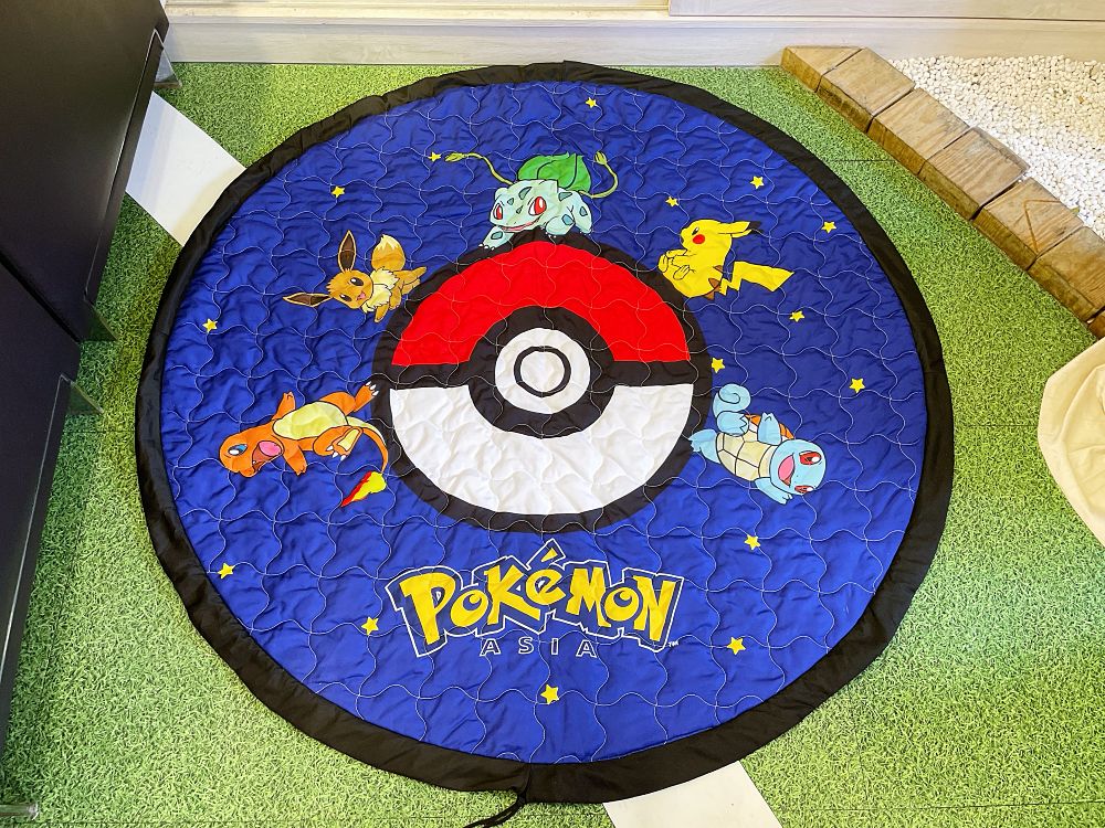 居家週邊則有遊戲墊可入手,正面放上精靈球、皮卡丘、妙蛙種子、伊布、小火龍與傑尼龜,背面則是滿版皮卡丘剪影,並有防滑設計,外層邊緣還有束繩,可一秒變身成收納袋。