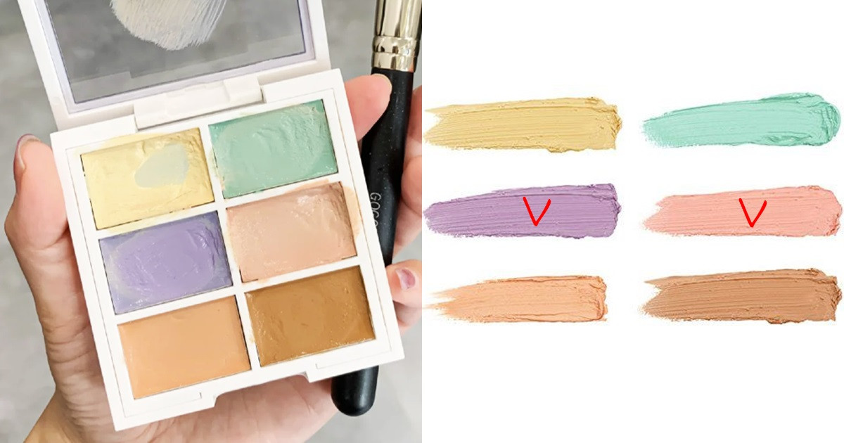 市面上比較常見的校色遮瑕通常是六色,並且由黃色、紫色、蜜桃色、綠色、粉色、卡其色等六色組合而成。校色遮瑕的原理其實就是將兩個對應色中和,用來修飾、弱化瑕疵~因此首先要了解每一個校色遮瑕對應的顏色跟膚況,才能更好的調出適合自己的遮瑕配色!
