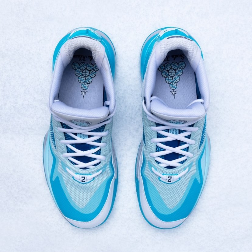 New Balance The KAWHI 聖誕版本拋開常規的紅白綠配色,而是採用了白、銀、藍來詮釋雪白的聖誕氛圍。官方解釋,這雙 The KAWHI 的設計靈感,源自於 Kawhi Leonard 最喜歡的雪怪 Snow Wasset,因此鞋舌上可見獸爪的圖樣,同時也詮釋著 Snow Wasset 在一片銀白雪地中的身影。Snow Wasset 是美國傳說中的一種生物,會在雪地中伏擊獵物,或許也代表著 Kawhi Leonard 這季會一掃上季季後賽陰霾,準備大展身手吧?