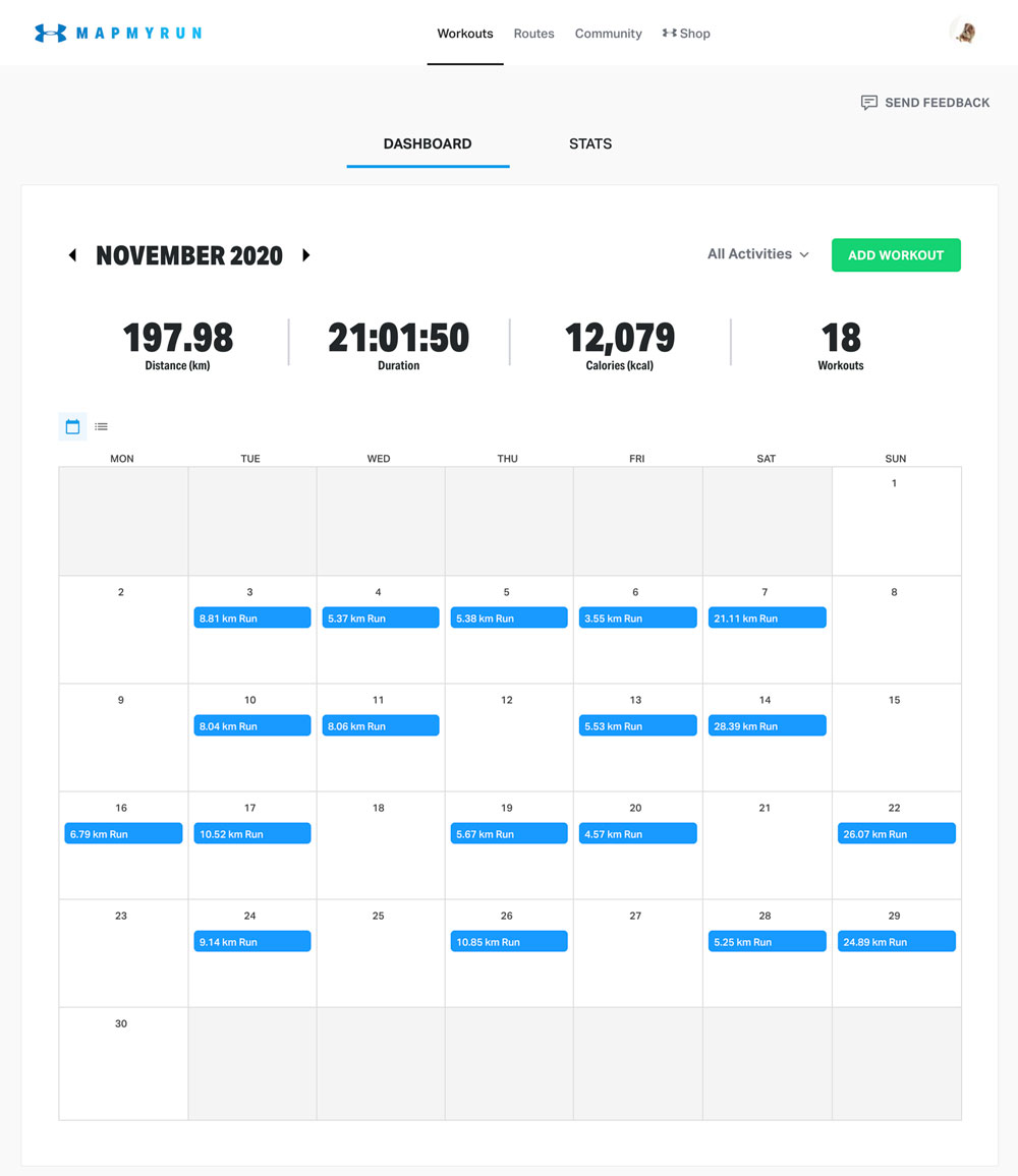 訓練完 Garmin Connect 也會將數據傳入 UA MapMyRun,再以手動選擇該次數據所匹配的課程,很像回到課堂交功課的感覺(笑)。