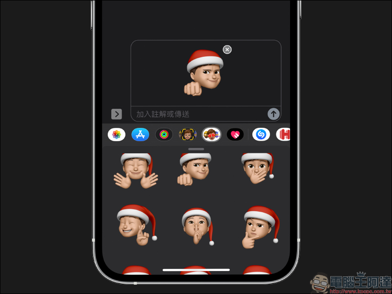 選擇 Memoji 貼圖就能將它傳送給好友: