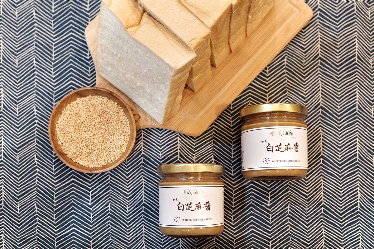 順成油廠的全新商品「珀醬」,共有花生、白芝麻、黑芝麻三種口味,同樣使用最好的原料所製成的醬料,不加任何一滴水、乳化劑因此特別濃稠,除了抹吐司外,許多客人會帶回家加入麵糰、餅乾中烘焙,純天然的芝麻饅頭、花生餅乾就很輕易地完成了,妞編輯特別推薦將芝麻醬加入麵條中拌炒,加一些些香油,麻醬麵也能輕鬆上桌!