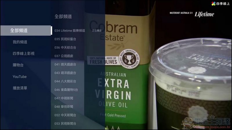 OVO 與世面上其他競品最大的差異就是在於它內建了合法第四台的 OVO 頻道內容,開啟機器時就可以直接收看,點擊確定就全螢幕顯示,只要參加會員跟傳統第四台的使用體驗一致,花的比第四台少、看的比第四台內容豐富:
