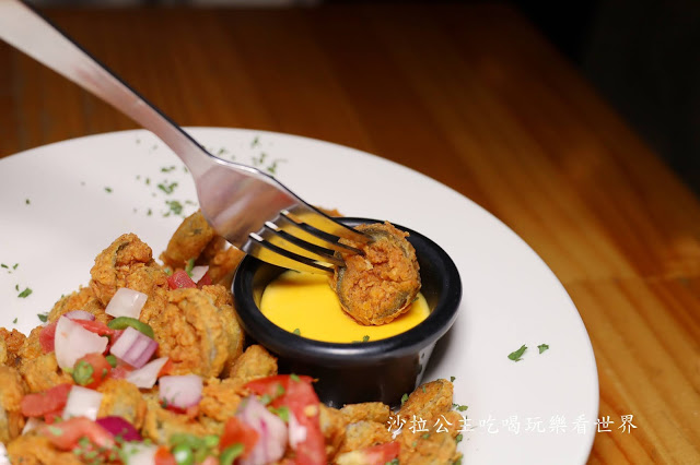 上面的起司條,以前我們吃美式餐廳時也會單點,趁他還熱時拉,可以拉到天邊去,視覺滿分
