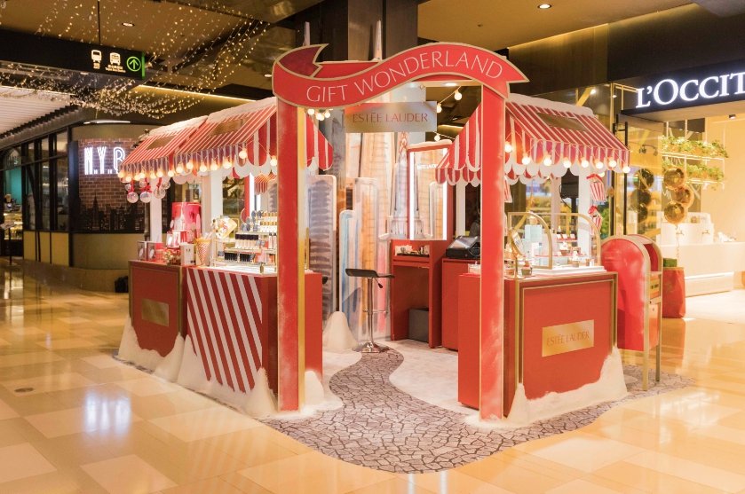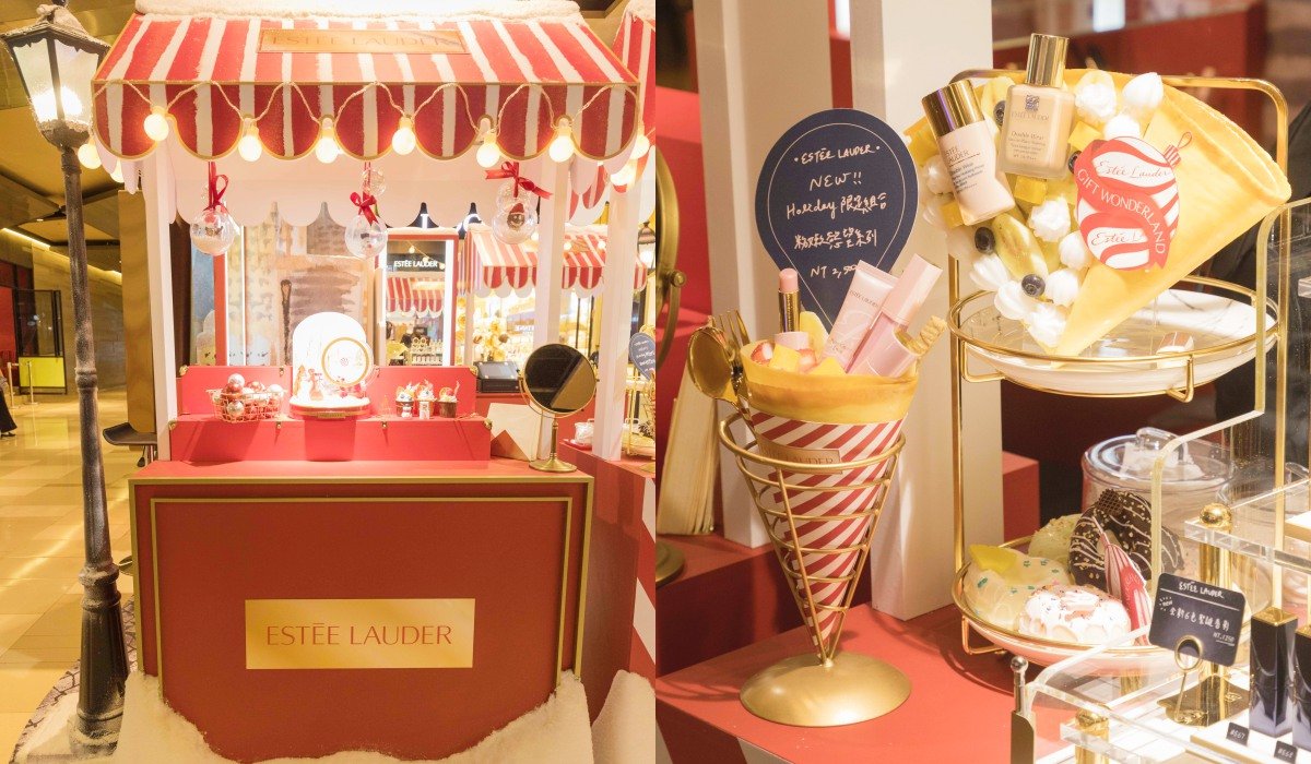 雅詩蘭黛特地將紐約上東城的聖誕市集搬到台灣,視覺上以充滿節慶的紅白裝點出市集的熱鬧氣息,