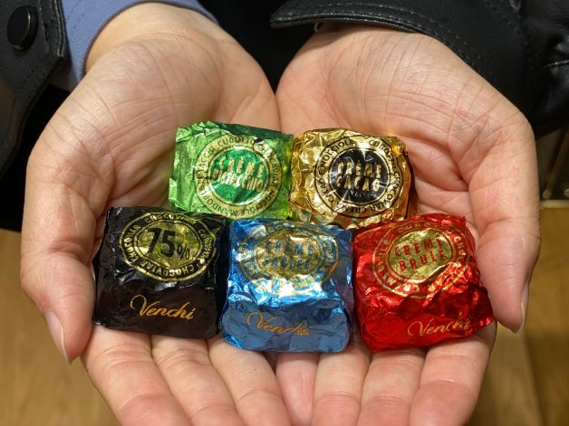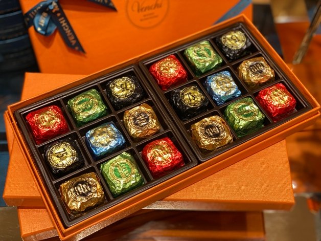 1878年Venchi正式成立,誕生年的第一款巧克力「N.3榛果巧克力角」其中至少含32%的皮埃蒙特榛果,並以北義大利嘉年華會帽子造型為靈感的三角形巧克力角,是Venchi的標誌性產品;另外還有三層夾心巧克力的「克米諾巧克力骰」,口味包括黑巧克力、白巧克力、榛果和開心果等!