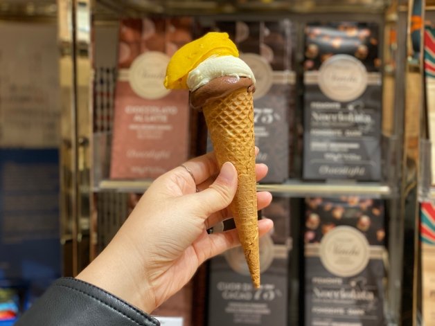 除了巧克力之外,Venchi台灣首店還有義大利冰淇淋「Gelato」,新鮮製造、純天然,並使用優質牛奶,口味有75%特濃黑巧克力、阿茲特克82%巧克力、佛羅倫斯奶油、提拉米蘇、榛子脆巧克力、香草、開心果、芒果、覆盆子和草莓等,每個月會更換2~3種口味,總共有迷你裝、獨享杯、共享裝和家庭裝等尺寸,任妞妞們挑選!