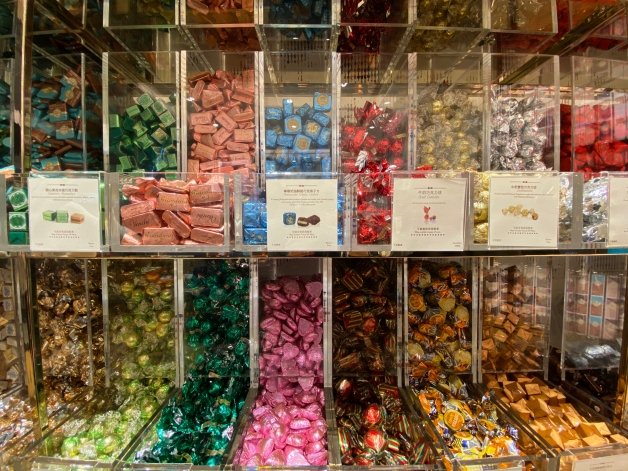 自選巧克力包含巧克魚子方、巧克力角、牛扎糖巧克力、古巴蘭姆巧克力、巧克力薄片、巧克力迷你薄片、克米諾巧克力骰、自享包巧克力磚、雙色巧克力球、松露巧克力和慧星巧克力等品項,購買方式為「自選秤重」!