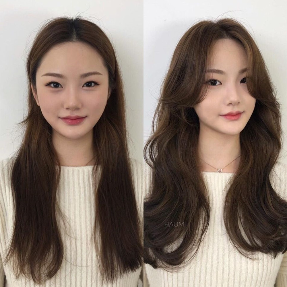 另外外翻的八字瀏海搭配髮根燙,也可以讓髮根更加蓬鬆有豐盈感,搭配捲度、也可以修飾顴骨及下顎線條。