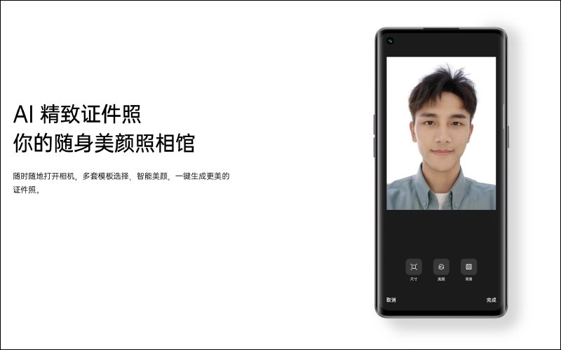 相機也提供許多有趣且實用的功能,像是 AI 證件照讓用戶能透過內建相機拍攝照片,接著透過 AI 智慧美顏、產生更美的證件照。