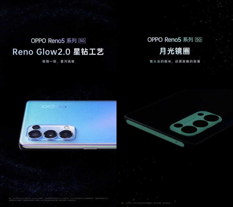 此外,這次還特別為 Reno5 Pro 星河入夢配色的後置鏡頭區域加入螢光塗層,白天它是透明的,在夜晚可以發出螢火蟲般的夜光效果。
