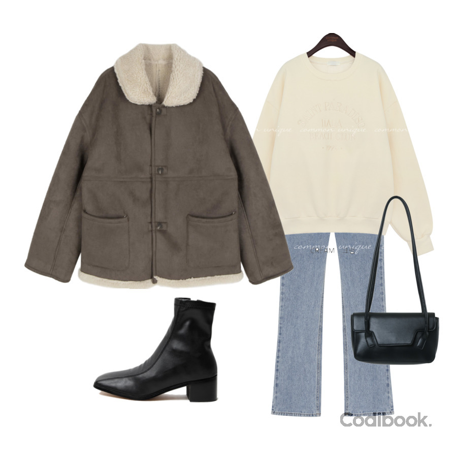 麂皮與絨毛裡外不同材質的碰撞展現豐富層次感,在舒適輕鬆穿搭之外配上皮靴,加入成熟感。