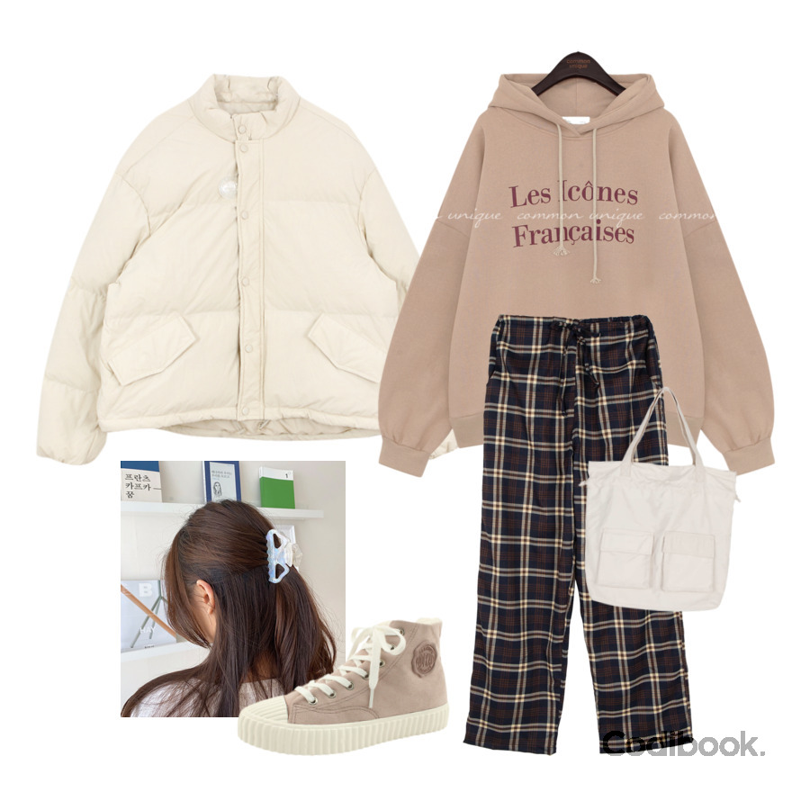 充滿學生氣的連帽T與格紋短裙穿搭,最適合搭配同樣可愛的澎澎厚外套了。掌握上寬下窄的法則,不只修飾身材,澎厚感十足的厚外套更是讓人忍不住想抱一下!