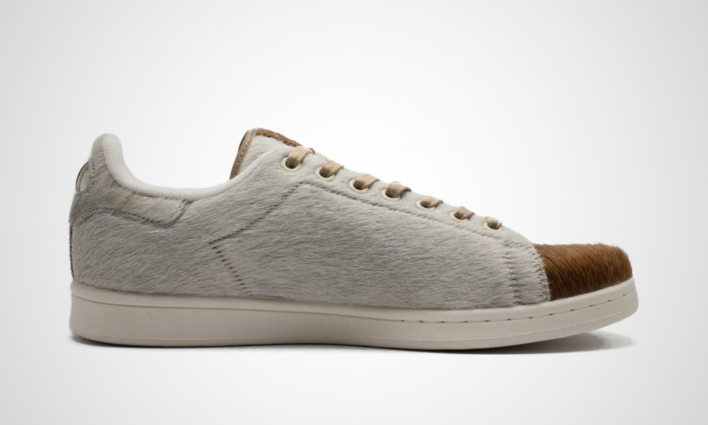 本次 adidas Originals Stan Smith 將小精靈毛茸茸的形象放到鞋上,全鞋面使用人造的絨毛材質,並用上了左右腳不同色的陰陽手法;此外,品牌還在鞋後跟,放上了小精靈的水汪大眼,討喜程度大加分。