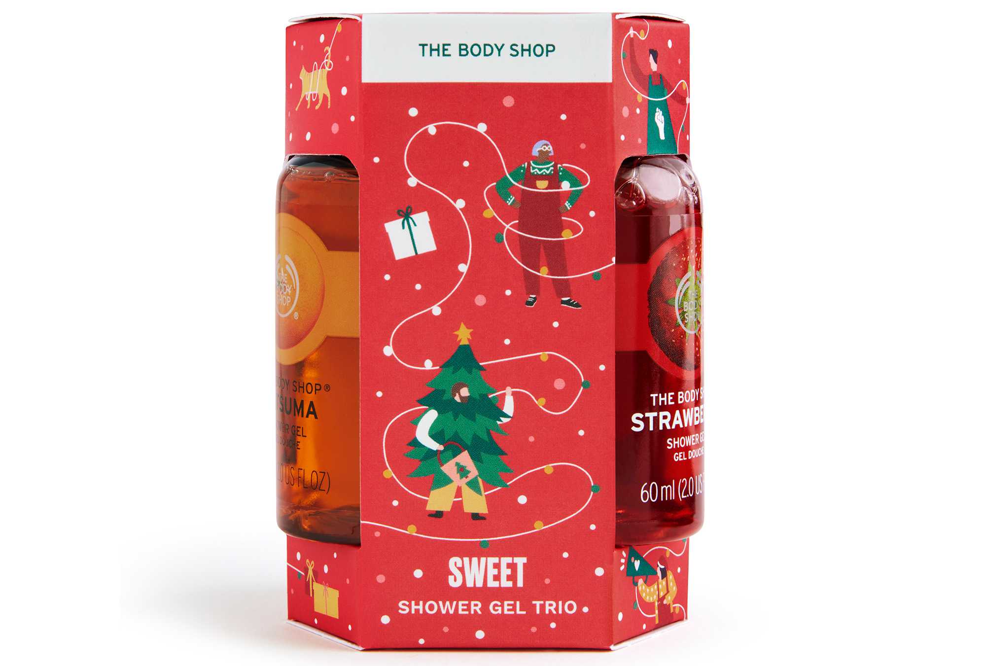 這組包裝充滿濃濃聖誕氣息!禮盒內包含三款果香,沐浴膠,沙蘇馬、草莓、粉紅葡萄柚各60ml,很適合旅行攜帶,甜甜的果香讓每次沐浴時光都療癒。
