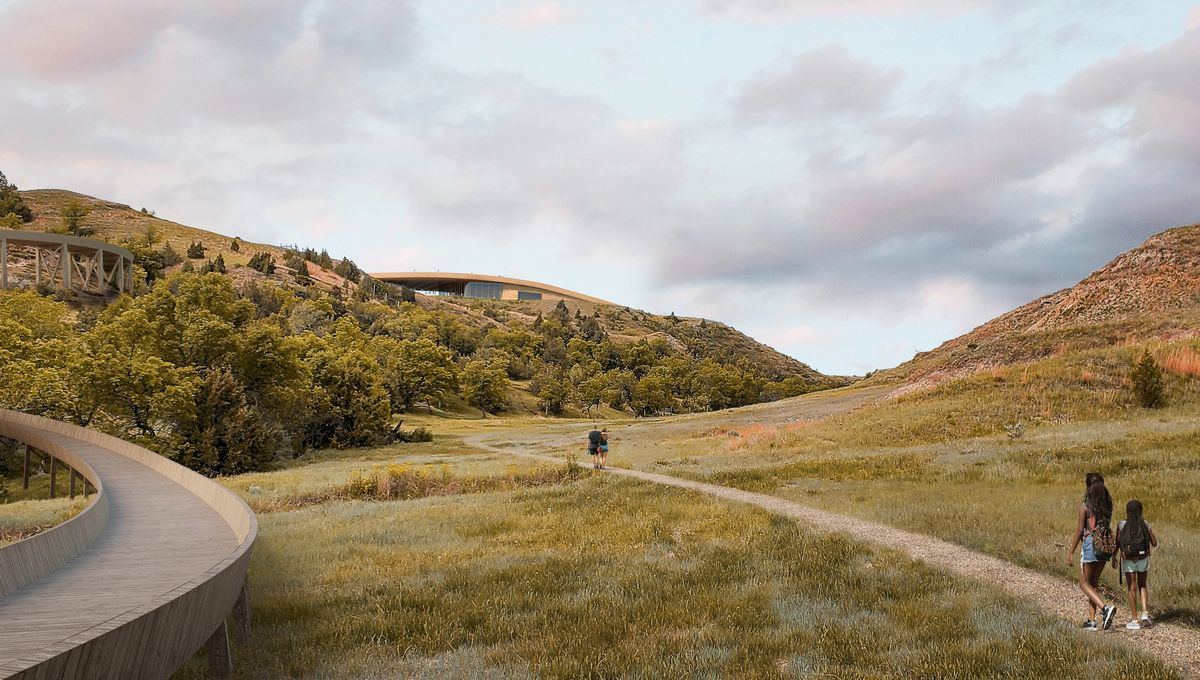 梅多拉地區四周被荒野所包圍,比鄰西奧多.羅斯福國家公園,並坐享令人心曠神怡的牧場風光,作為老羅斯福總同紀念圖書館的絕佳場地再適合不過!Snøhetta工作室的獲獎設計,是以巨大的弧形屋頂貼合該地景色,與自然風光巧妙融合,一條蜿蜒小徑將帶領著旅客們抵達紀念圖書館的位置。