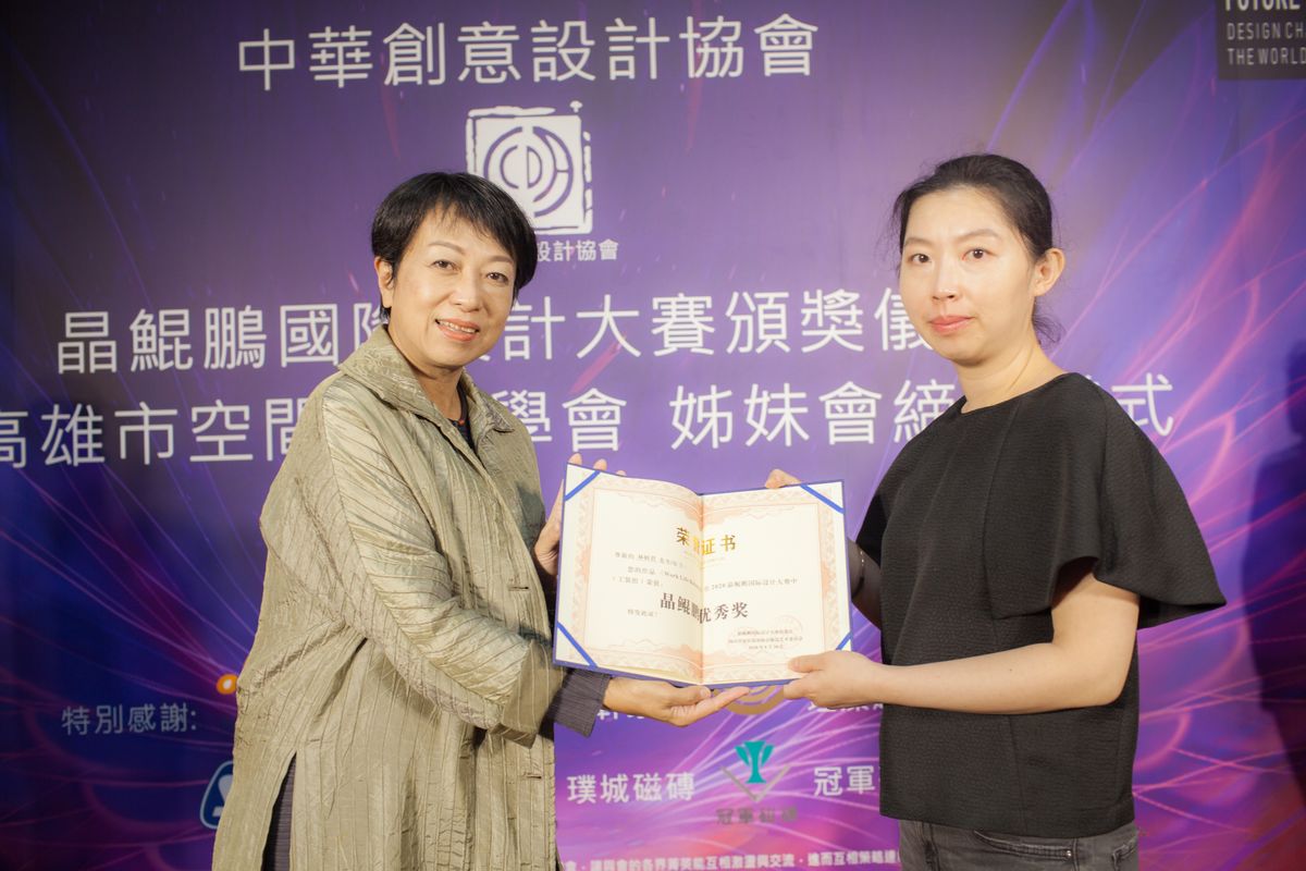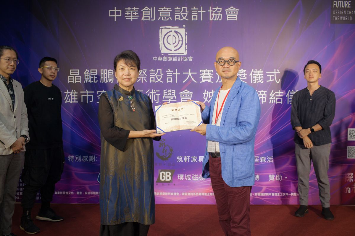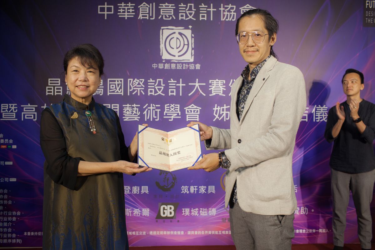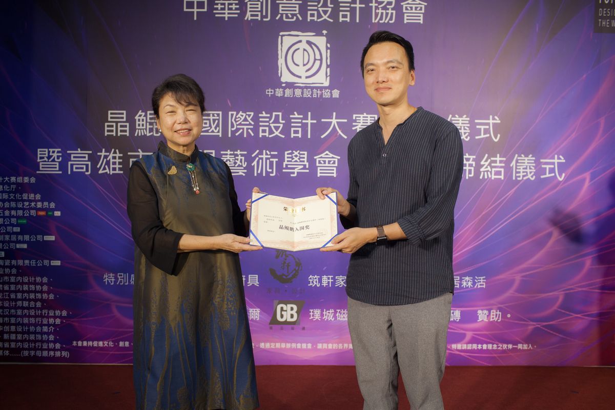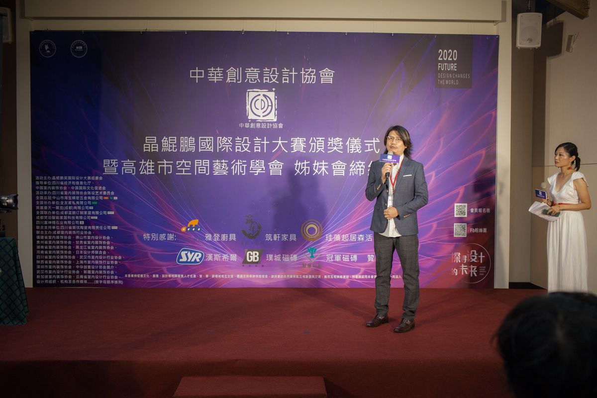 身為此次活動重頭戲的晶鯤鵬國際設計大賽頒獎典禮,楊書林理事長說明晶鯤鵬國際設計大賽乃是由四川省室內裝飾協會陳設藝術委員會承辦,結合台灣中華創意設計協會、日本設計師協會、新加坡室內設計協會以及成都室內裝飾行業協會等數十個設計行業協會、設計組織機構及媒體聯合主辦,賽事目的為吸納頂尖人才,運用頂級設計理念,豐富城市文化供給,創立享譽全球的國際設計大獎,並向世界展示東方強大設計力量。