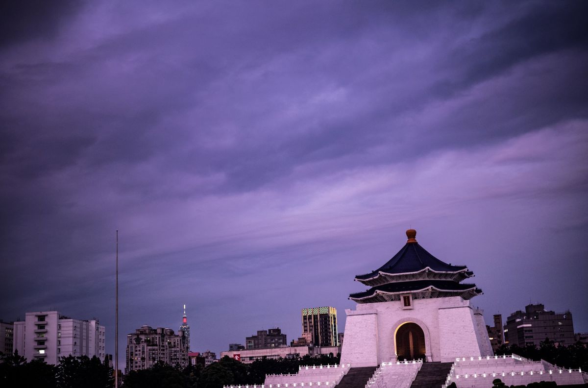台北從日治至國民政府遷台等各個時期的風格相異的建築,現在在人們心中是什麼模樣?伍佰在大雨方歇、華燈將上的黃昏時分,在橘紅轉為紫黑的魔幻光影中紀錄了中正紀念堂台階中間的灰白海浪波紋丹陛與寶藍琉璃瓦頂、台北郵局郵務車的濃重墨綠、北門(承恩門)的紅磚與單簷重脊歇山式屋頂、北美館大堂的明暗光影、台北植物園荷花池畔紅柱碧瓦涼亭與萎零荷葉、國父紀念館入口處的仿古飛簷與台北101的新舊對比、光復南路大廈之間於逢魔時刻倏然湧現的金光幻彩、漫步雨後街頭的搖曳裙擺。Leica M10-R相機將這些乍現於魔幻時刻與光影交界點點滴滴彙集成伍佰眼中的台北的顏色,充滿張力,浪漫而富有詩意。