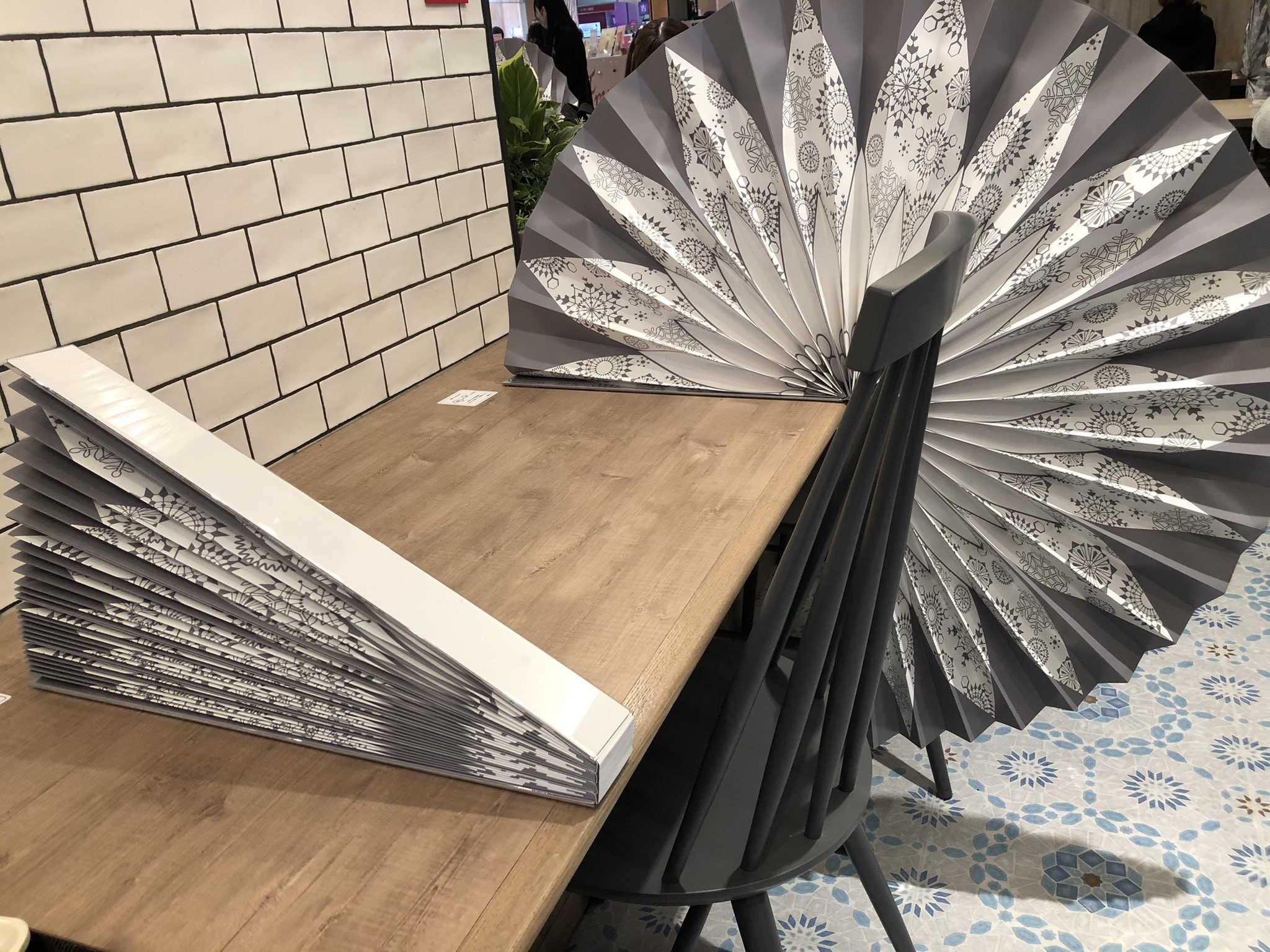 有網友在美食街吃飯發現每桌桌邊都有一個像是孔雀開屏般的裝置,展開是一個漂亮的隔板。還沒展開時看起來就是一把大扇子,讓人聯想到日本搞笑段子中常見的道具,因為打起人很大聲十分有效果,所以做的一把比一把大。