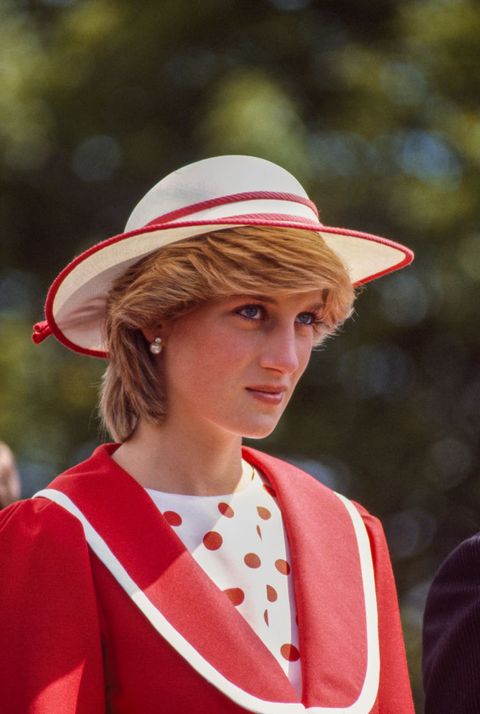 在前往加拿大的皇室出訪行程中,黛安娜王妃以一件俏皮可愛的紅白配色上衣,搭配相同配色的圓帽與西裝,塑造活潑的夏日風格。