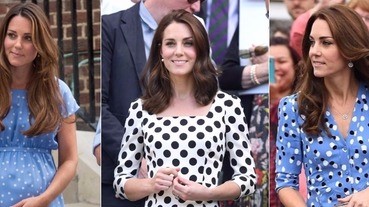 在威廉王子出生後,黛安娜王妃首次步出醫院便是穿著這件白綠配色的緞帶領裝飾洋裝,而在30多年後,凱特王妃在誕下喬治王子後的首度公開露面,也選擇了一件藍白配色的圓點洋裝,向無法見證孫子出生的黛妃低調致意。