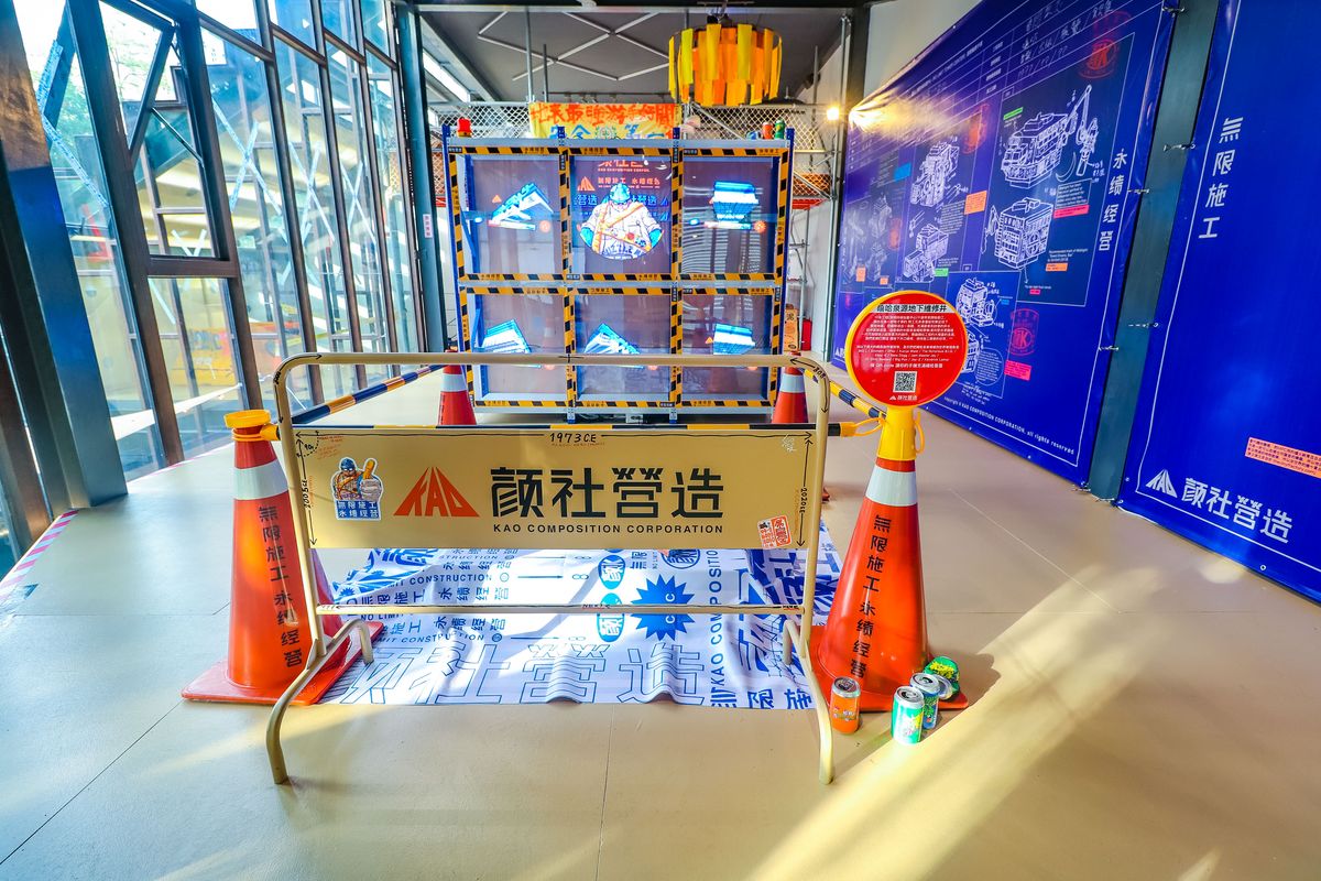 顏社拆解工地中常見的景象作為展覽細節,如同道路挖掘工程的景象象徵顏社創立前,受到許多外國地下文化的啟發。並利用工地中常見的榮譽榜,結合大量拼接的視覺與塗鴉,凸顯每一位藝人的個性、綽號、愛用小物、創作風格與生活,讓民眾更加了解與貼近每位藝人極具獨特的個性。此外,展場更運用3座全息投影,將六個角色的影像生動地展現於民眾眼前。走至展場末端,則模擬著傳統董事長辦公空間陳設作為創辦人迪拉的辦公座位,一系列與名人的虛擬合照、黑膠唱片、藍圖、名片與透明軟墊,創造豐富而鮮豔的拼貼視覺。
