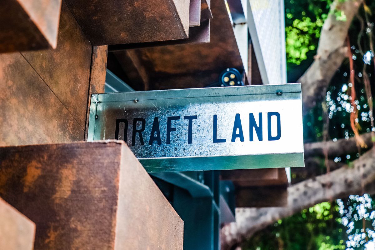 在空間設計上,Draft Land與台中在地設計團隊【生活起物 googoods】負責人莊騏鴻一同合作,以「為空間打造有形夢想的入口(工地)、和為心情創造無形解放的出口(酒吧)」為精神,將工地獨有的空間語言與工地師傅的浪漫,轉換在Draft Land的酒吧環境中。師傅就地取材的水桶音響、水平雷射儀的光束透過酒杯折射營造熱鬧氣氛、及出口指示燈成為釋放日常壓力的出杯口等...,透過設計轉化於酒吧不同角落。工地素材與施工時的吵雜氛圍,也巧妙地成為酒吧歡愉圍繞的背景音樂。