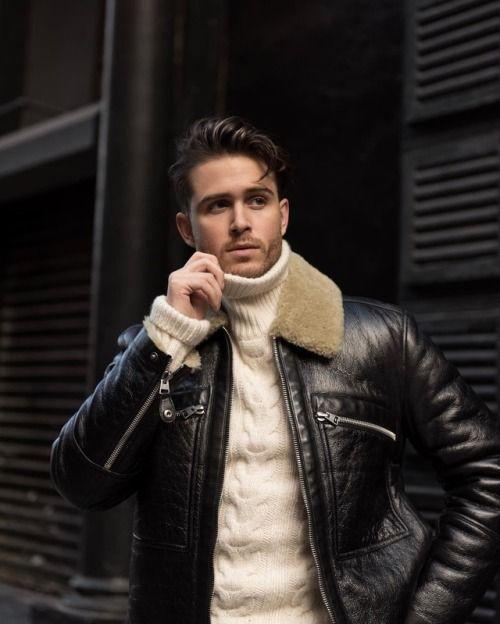 運用保暖毛領和翻領造型的皮衣,不僅能為脖子增加保暖度,同時使穿搭質感提升品味氣息,帶點合身剪裁能為身形修飾顯瘦感之外,於毛領皮衣內搭暗色系毛衣還可營造迷人的帥氣魅力,當進入寒冷冬季時只要再加入圍巾混搭瞬間點亮層次焦點。
