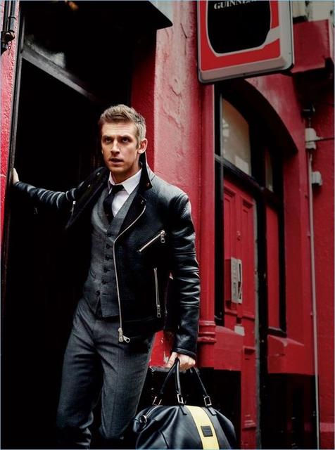 ▲ 以襯衫+領帶+西裝外套+騎士外套的層層堆疊,打造專屬個性的都會Look。 Photo Source