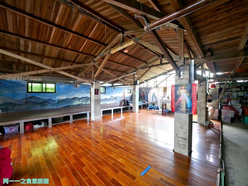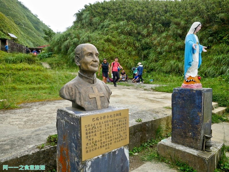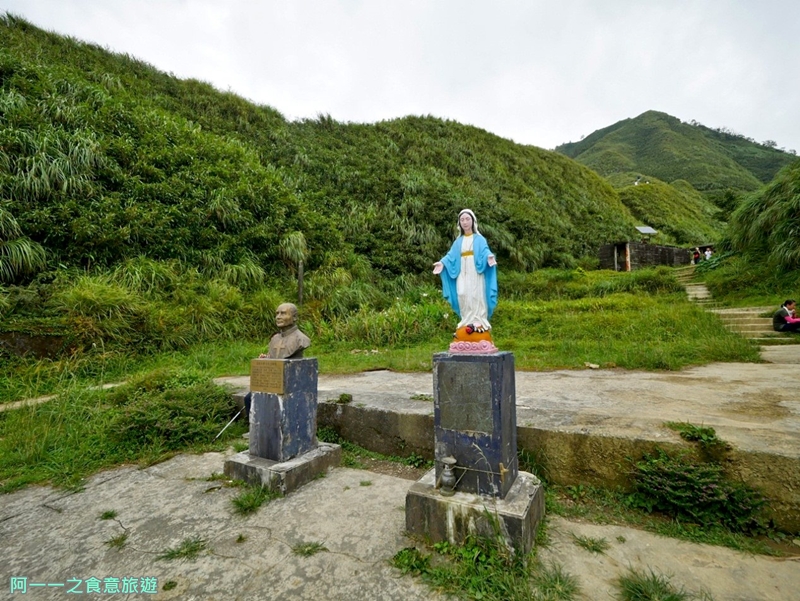 供登山者歇腳或避風雨,屋前立了一座聖母像,