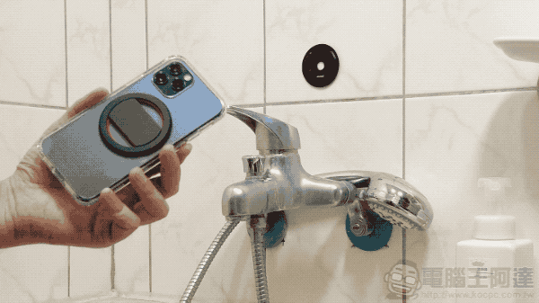 不過透過 Snapmount,你就可以把手機輕鬆吸在浴缸前,沐浴的時候還能爽爽看片,最大化手機防水的好: