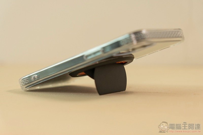 不過如果加上 Ohsnap 手機架,除了力道更強不易掉落以外,也可以完美對應背後凹槽達到更好的固定效果: