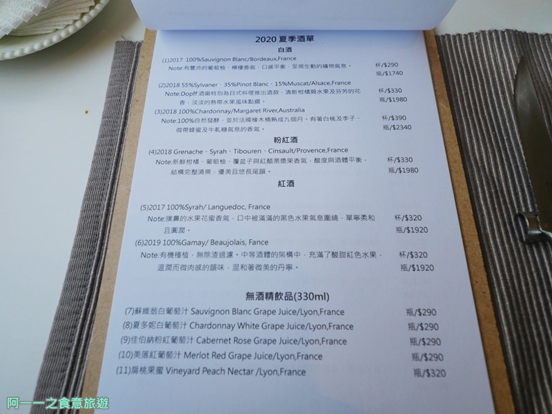 餐點包含前菜、附食、兩主菜、甜點和飲料,
