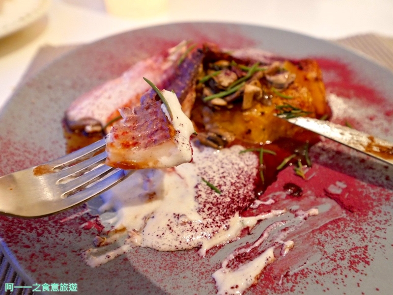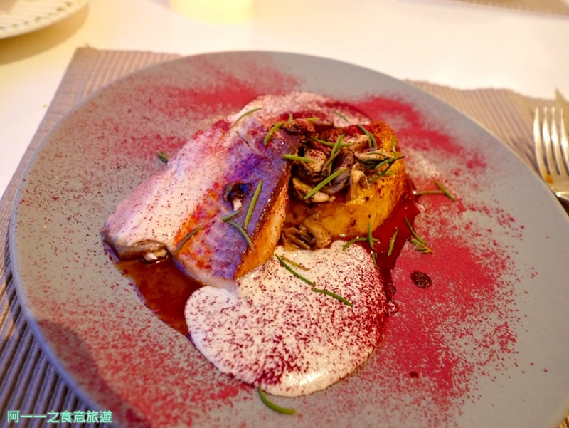 魚肉經過煙燻後,搭配酸甜草莓果泥醬汁,