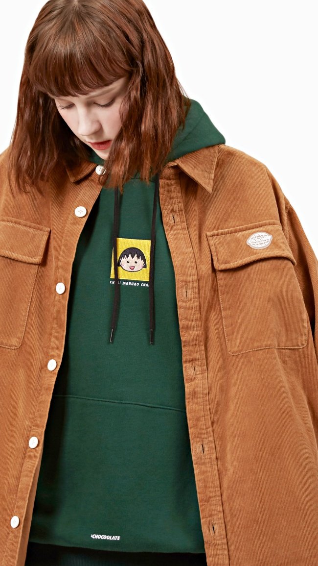 除了:CHOCOOLATE招牌大學T、帽T等休閒單品,3大人氣角色也結合英倫校園風,讓小丸子超俏皮的從格紋、牛仔襯衫口袋冒出跟大家「SAY嗨」,滾邊針織外套也不忘點綴小丸子的特寫大頭,好搭又有紀念價值!