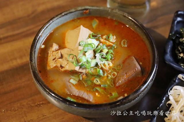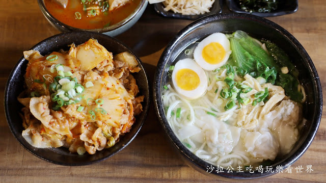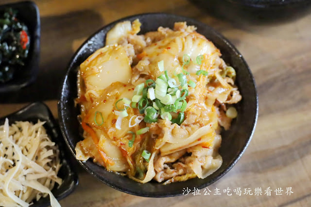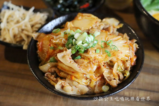 剛開始我們看到這碗覺得份量有點小,雖然裝滿滿的,但其實底下飯量很足夠,而且泡菜很夠味,搭配那些飯還有小菜,鹹度是夠的