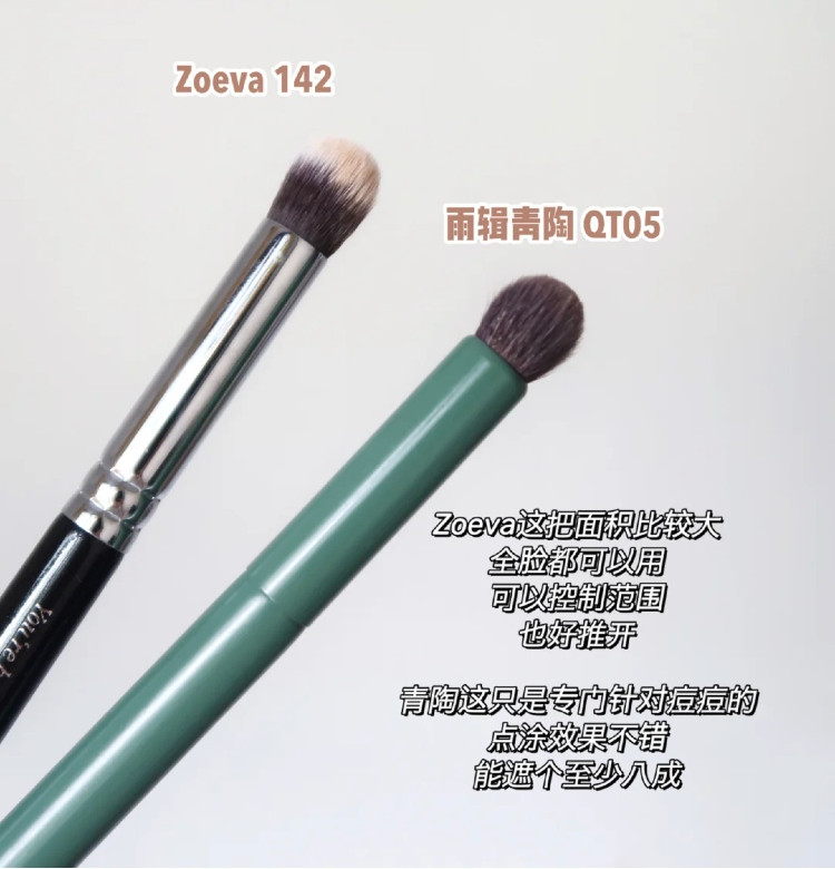 扁平刷、舌形刷顧名思義就是全臉都能用,不管是黑眼圈、痘印還是痘痘都可以遮!不過這類型刷特別適合遮痘痘和痘印,能夠將遮瑕膏壓得很實,不容易脫妝!