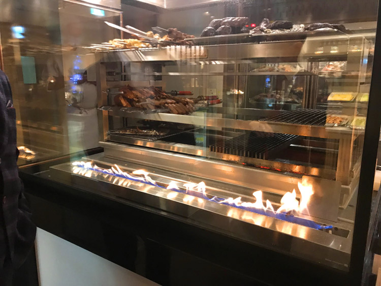 為了讓主廚精選的頂級食材呈現最佳風味,此次改裝更斥資兩百七十萬元引進西班牙國寶級烤爐Josper Grill超大型烤爐,成為市場上首家且唯一使用堪稱料理界夢幻烤爐的自助餐廳,此烤爐最大特色就是木炭直火碳烤特殊的香氣與口感,保留頂級肉質的原汁原味,「遠東Café 」炭烤區提供的肉品從原有的6款更增加到10款以上,推薦料理為慢火煙燻豬肋排、慢火煙燻和牛舌、濕式熟成爐烤牛排以及各式巴西窯烤美食。