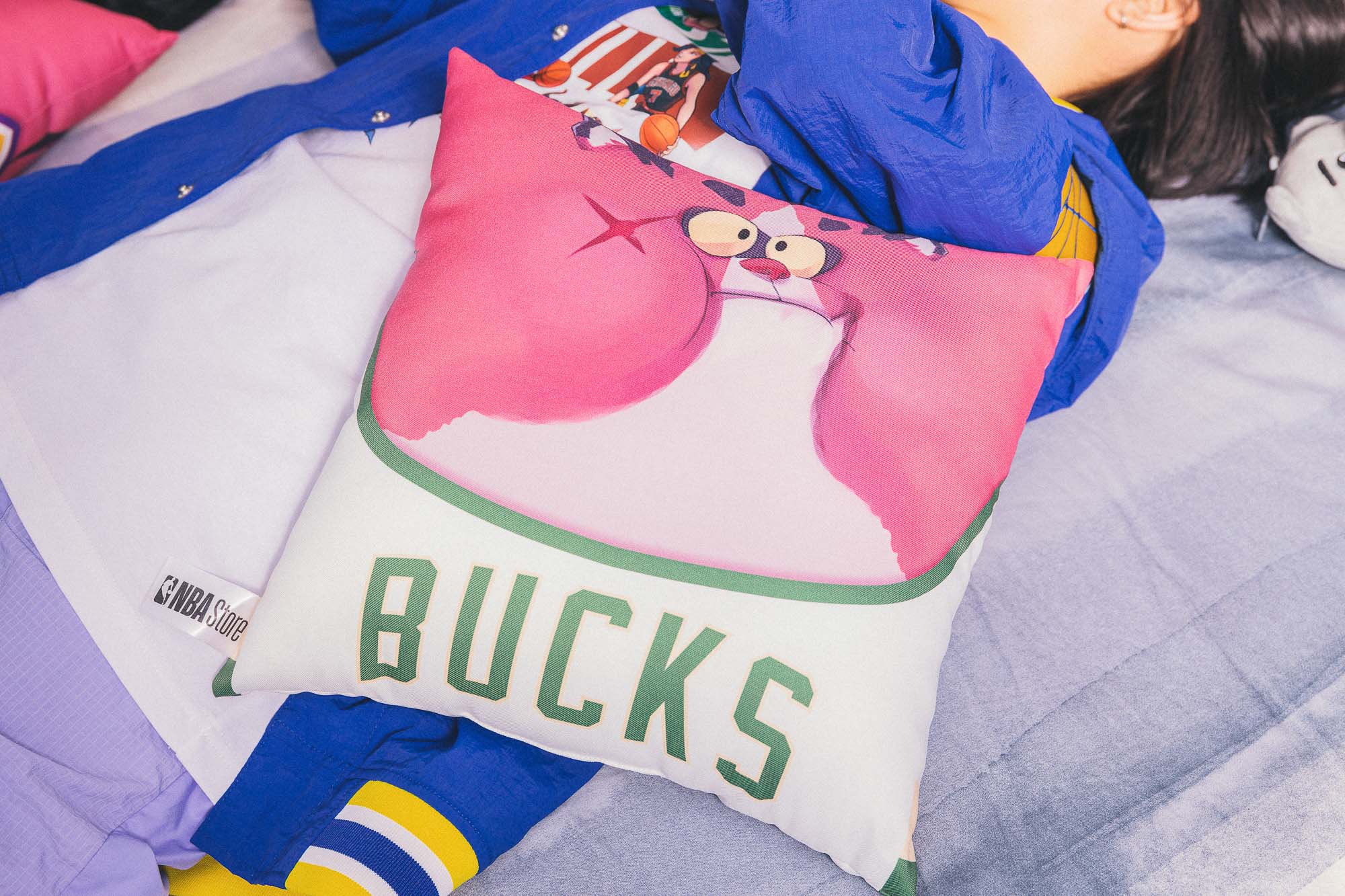 - 聯名皮皮抱枕 NT$490 英雄角色皮皮扮演球員到六支 NBA 隊伍串門子,看他玩得很是開心