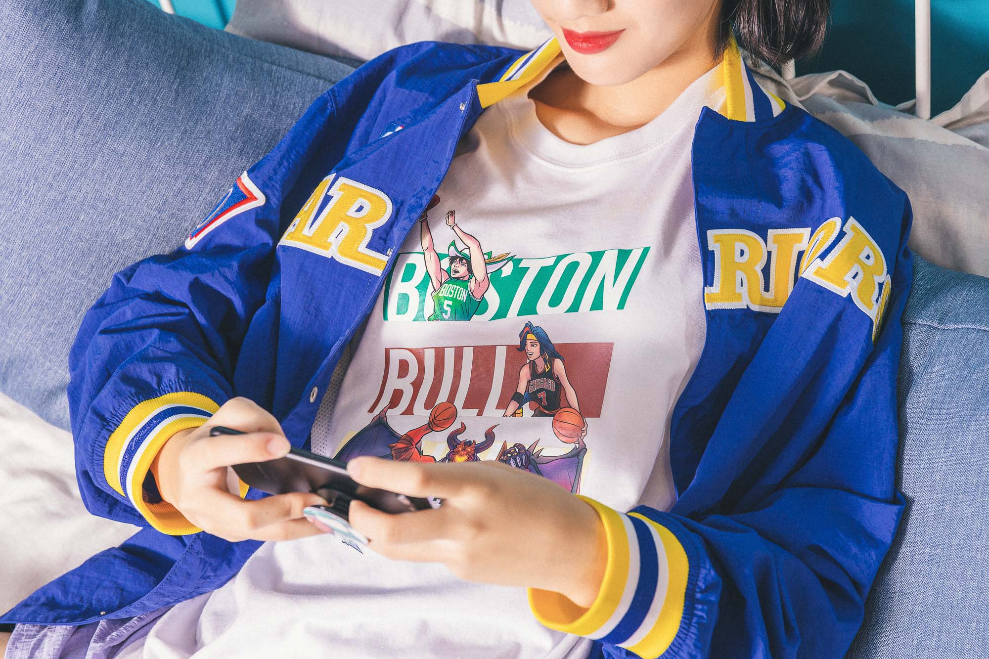 雖然說手機遊戲有著不受地域限制的優點,但《Garena 傳說對決》一場 15 分鐘上下的時間,還是不想被太多因素干擾,待在家中穿著舒適的服裝應該是最理想狀態吧,NBA Store Taiwan x 傳說對決聯名 T 恤以運動機能需求的棉質打造日常服裝,親膚表現再套上件衛衣或鋪棉外套,配雙居家外出兩相宜的皮皮踝襪,在家中本就該如此享受。