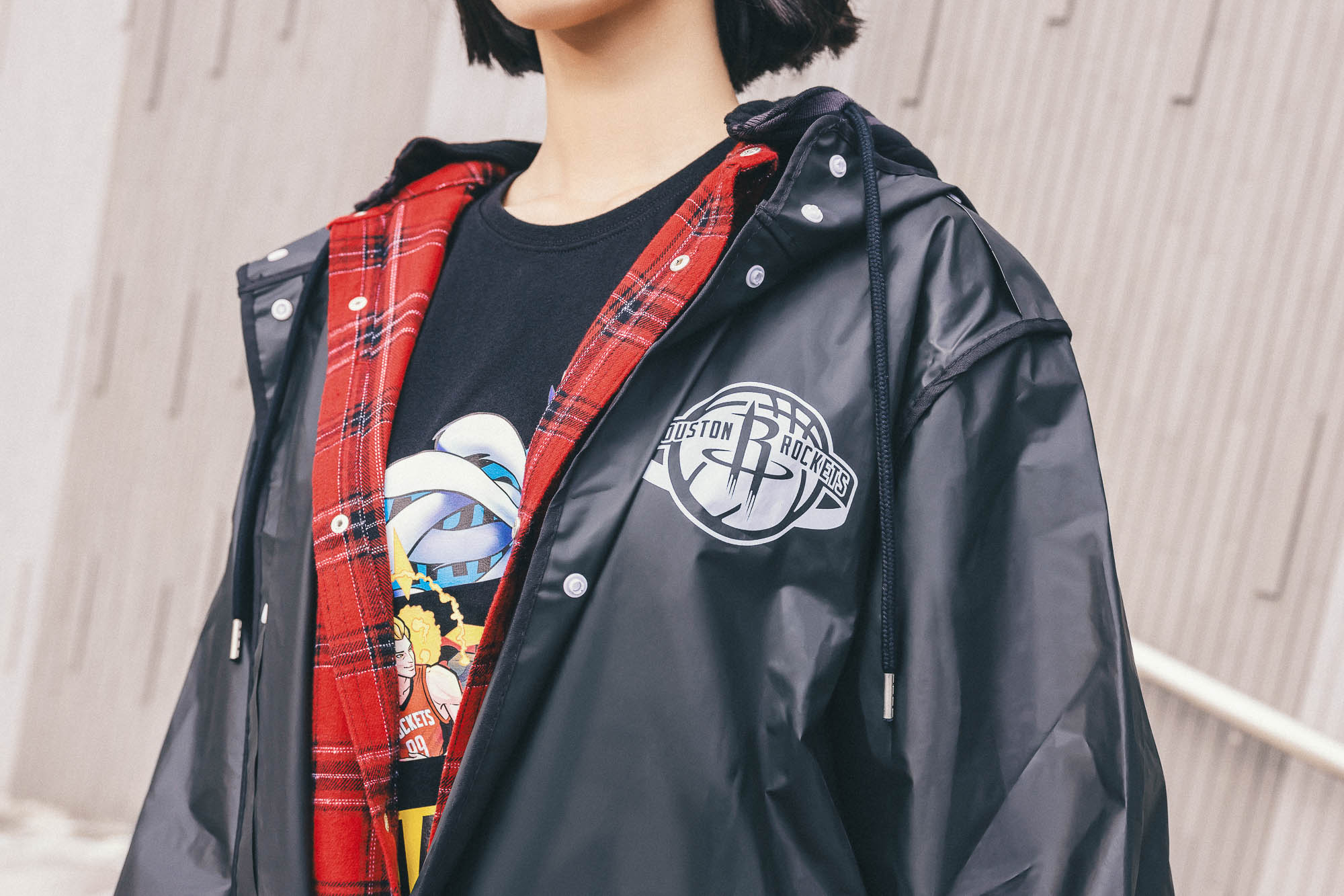 NBA Store Taiwan x Garena 傳說對決聯名共有 10 樣裝備,除了聯名 T 恤全場都適合之外,其中出門在外會用到的各式裝備 NBA Store Taiwan 都幫你一次準備齊全,包含最近北部陰雨綿綿絕對會需要點滿的防禦裝備——雨衣、雨傘,尤其黑色調為主配上背後圖案裝飾的雨衣,設計簡單有重點是日常穿搭的好夥伴,甚至不用是穿搭白金玩家也能夠駕馭上手,當然不想要重裝備的話也有透明聯名直傘供自由選擇,不讓天氣打亂你一天的行程與興致。