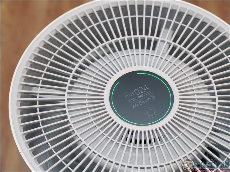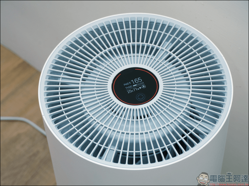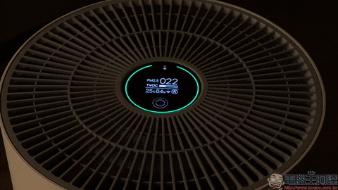 在智米空氣清淨機頂部的 OLED 螢幕方便即時檢視環境的空氣品質,外圈的色彩也會隨著空氣品質變化而同步改變。