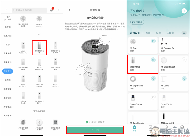 作為小米生態鏈的智慧家電,智米空氣清淨機當然也支援米家 App 配對和遠端遙控等各項功能囉!首次配對時添加新裝置時,在環境電器分類找到「智米空氣淨化器」的選項,接著依照 App 的配對教學進行操作即可快速完成配對程序。完成配對後,智米空氣清淨機會顯示在用戶個人的米家主畫面面板,能在 App 直接遠端遙控空氣清淨機的電源、運行模式等操作。