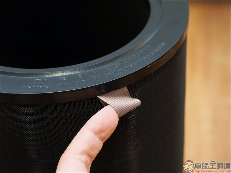濾芯上設有織帶設計,讓用戶更輕鬆將濾芯體從空氣清淨機內取下替換: